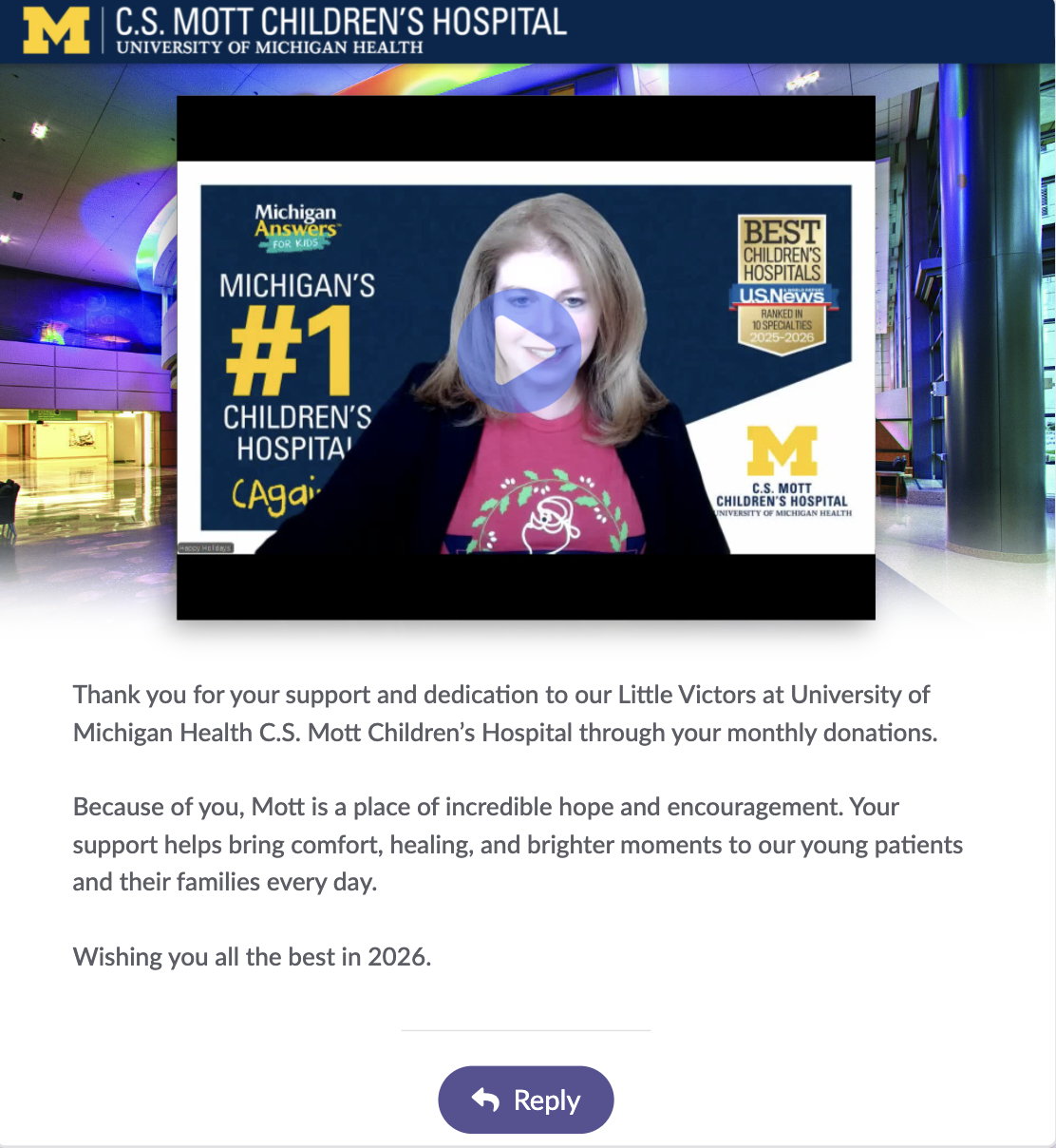 Utilized analytics and A/B testing to optimize email fundraising initiatives for the Rogel Cancer Center. Experimented with animated 5-second video previews versus static screen grabs, resulting in an increase in click-through rates on the video previews. This strategy successfully encouraged more recipients to watch the fundraising video, ultimately enhancing donor engagement and supporting philanthropic goals.