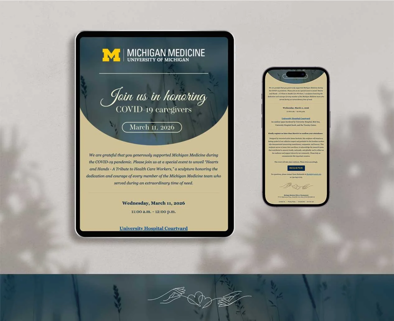Developed a monthly email newsletter for Medicine at Michigan, targeting alumni and donors to highlight upcoming events, philanthropic initiatives, and faculty achievements. Designed and implemented a responsive, fully optimized HTML and CSS email template compatible with all screen sizes, devices, and dark mode settings.
